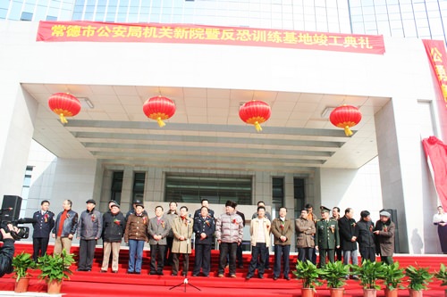 •   2010年上午10點58分,常德市公安局機關新院暨反恐訓練基地竣工儀式在新大樓前坪準時拉開序幕。中*共湖南省委委員、省公安廳黨委副書記、常務副廳長唐中元,中*共常德市委副書記、市長陳文浩,中*共常德市委副書記曹儒國,常德市人大常委會主任劉本之,常德市政協主席劉春林,市委常委、市政法委書記胡宗清,市委常委歐運崇,市委常委、常務副市長劉小明,市委常委、副市長宋冬春,市委常委、市軍分區司令員董正武,市委常委、市統戰部部長李愛國等領導以及公司董事長張照耀先生出席了儀式。
